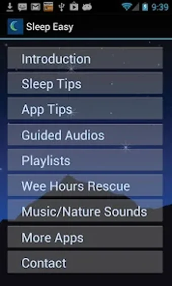 Dengan konten yang mencakup sembilan meditasi terpandu, tiga pilihan musik, dan enam suara alam, iSleep Easy juga menawarkan fitur Sound Mix untuk mendengarkan kombinasi suara. Terdapat tiga Playlist preset dan kemampuan untuk membuat playlist pribadi, serta tips untuk tidur yang lebih baik. Suara alam berkualitas tinggi yang baru ditambahkan dari perekam Emmy Award, Gordon Hempton, menambah pengalaman meditasi yang lebih mendalam.
